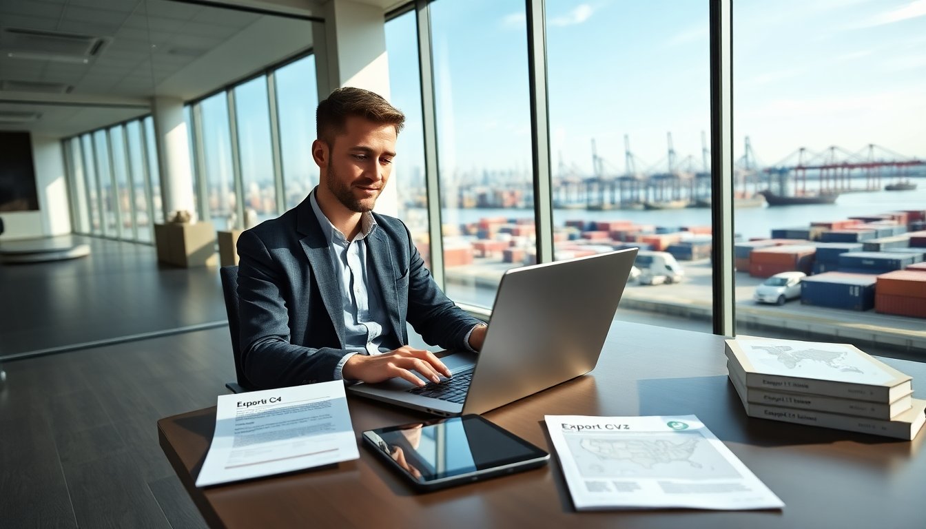 exportjob24 helps job seekers find export and shipping roles online. The site lists jobs, company